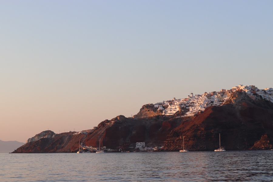 지는 햇빛을 받아 오렌지 빛으로 물드는 이아 마을.